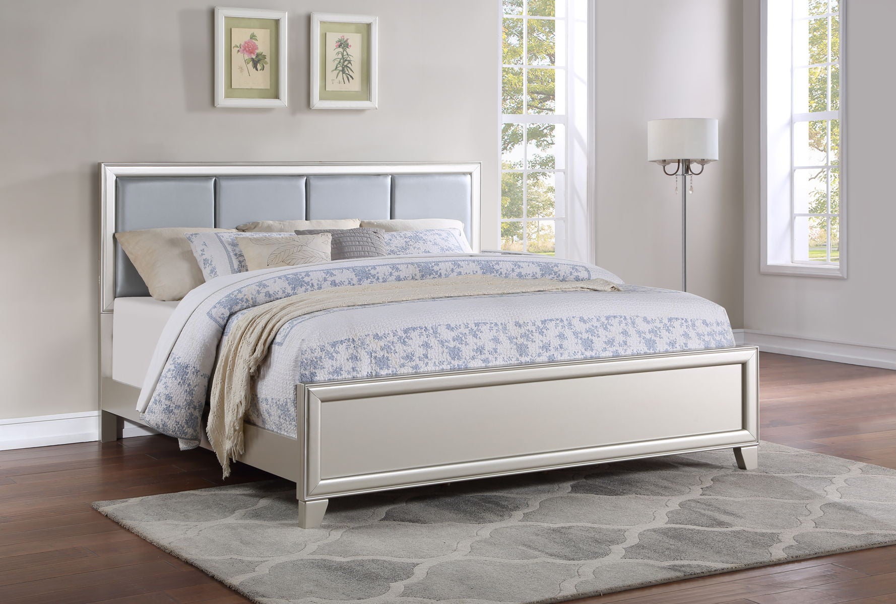 A glamourous contemporary bed with an upholstered headboard and sparkling finish. The Omni Bed promises to upgrade the look of any bedroom instantly. A cool upholstered leatherette headboard offers a comfy and stylish addition to the bed setup while a framed footboard completes the look.
