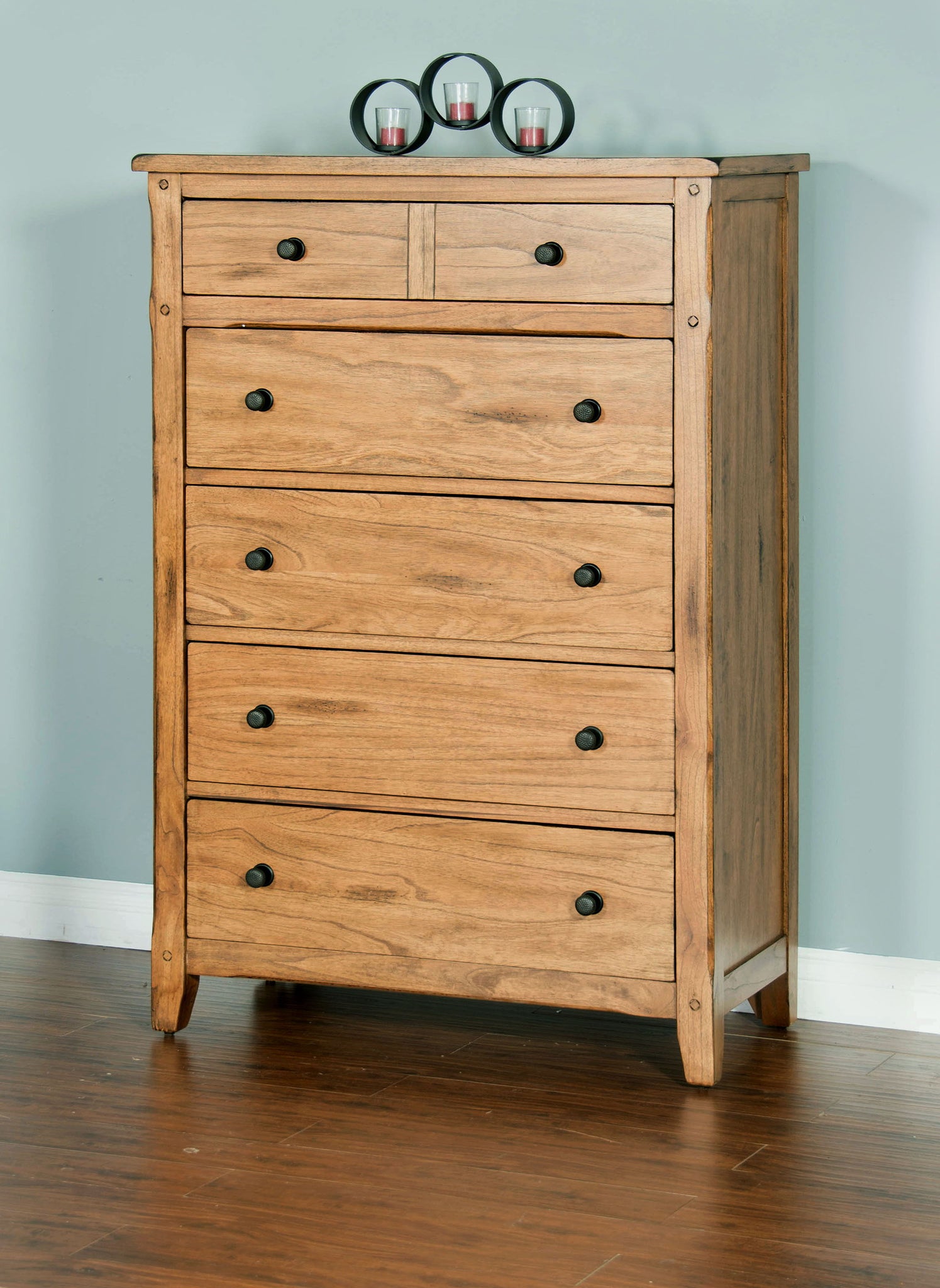 This bedroom set has been built with distressed mindi solids and veneers, full extension ball bearing drawer guides and genuine slate accents. Available as panel bed or bookcase storage
