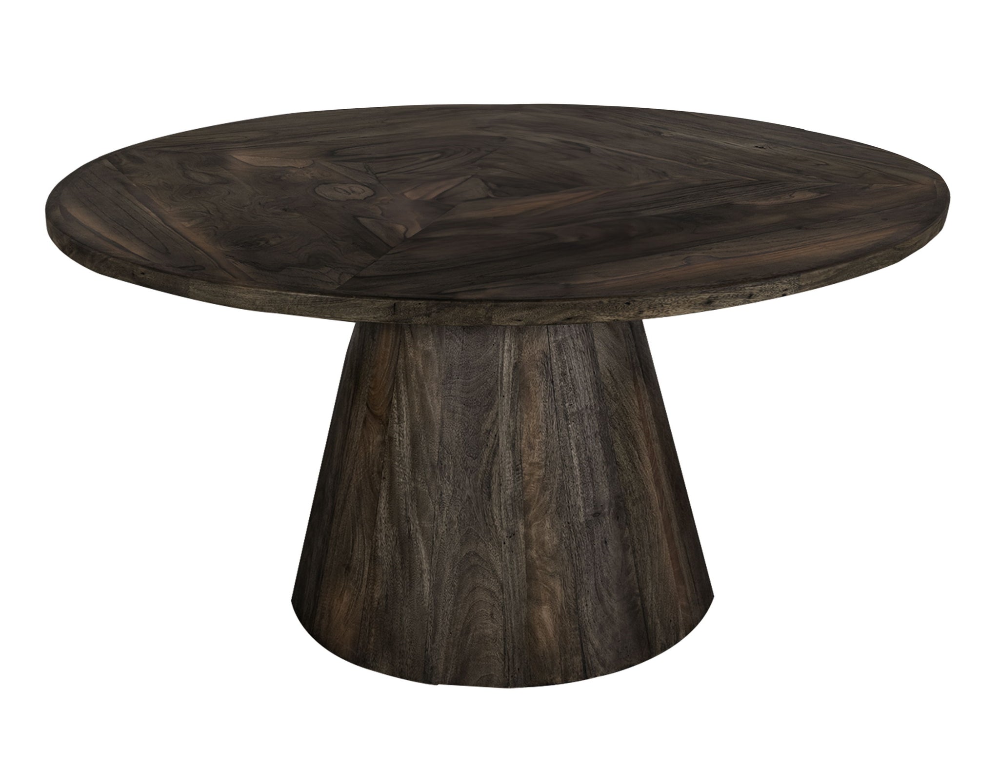 - Our Balam collection is handcrafted from mango and teak wood, offering a simple yet stunning addition to your space with an organic, modern touch. The Balam table features a sturdy, conical wooden base that showcases the beautiful, natural grain of the wood, providing a solid foundation for the smooth, round tabletop. Elevate your dining experience by pairing this table with the stylish chairs available in the collection, creating an inviting atmosphere in your home.