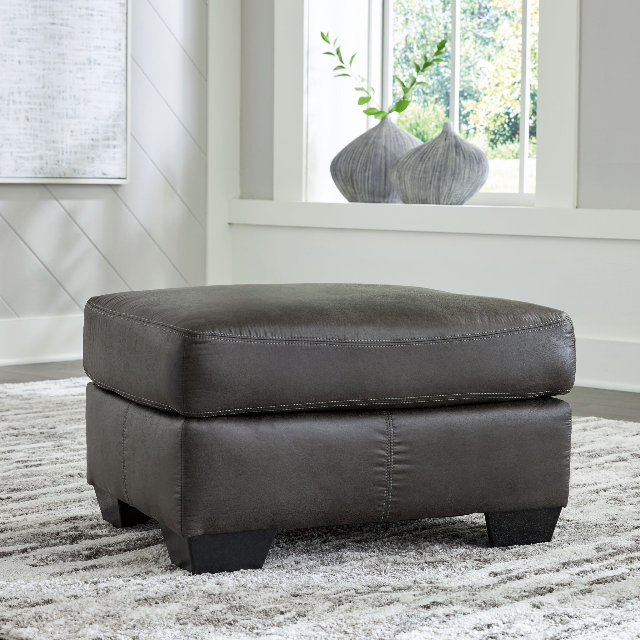 If you love the cool look of leather but long for warm feel of fabric, you'll find this ottoman fits the bill beautifully. Enhancing its handsome profile: a textural, multi-tonal upholstery that's loaded with character and interest. What a rich addition to your space, at such a comfortable price.