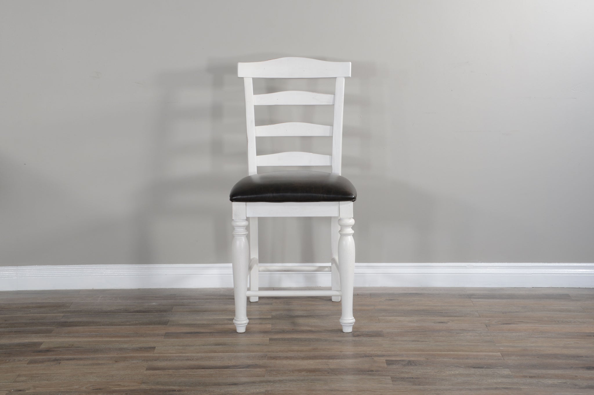 This 24"H Carriage House ladder-back barstool with wood seat. Is elegant and beautifully crafted from mindi and mahogany solids and veneers.