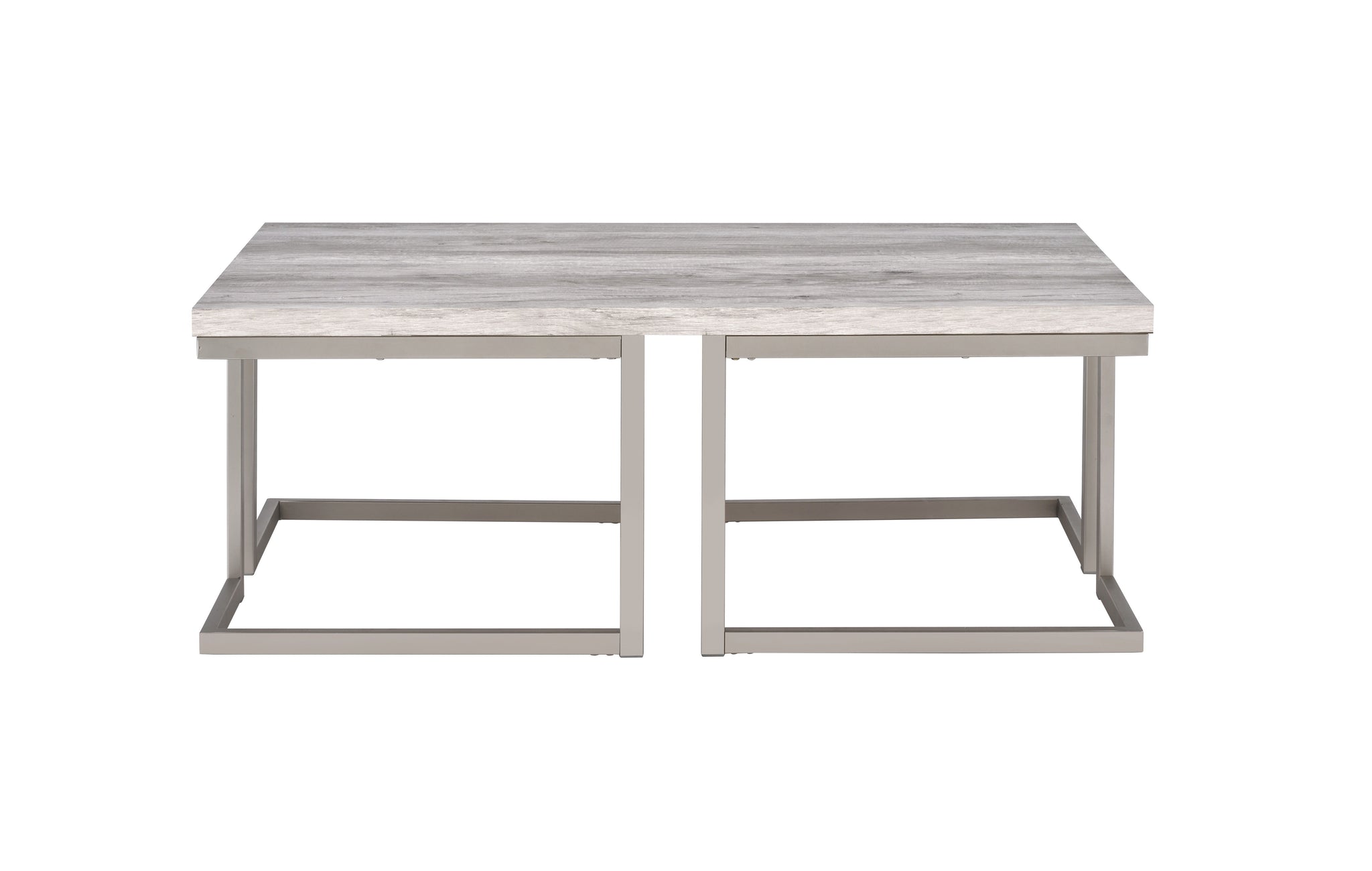 Refined rustic style comes to your living room with David occasional tables from Steve SIlver Company. The contemporary styled matte pewter colored base features an interesting geometric shaped base that combines with the Silvershield® driftwood colored top to create a table collection comfortable in today's neutral environments. Choose from cocktail or end table.