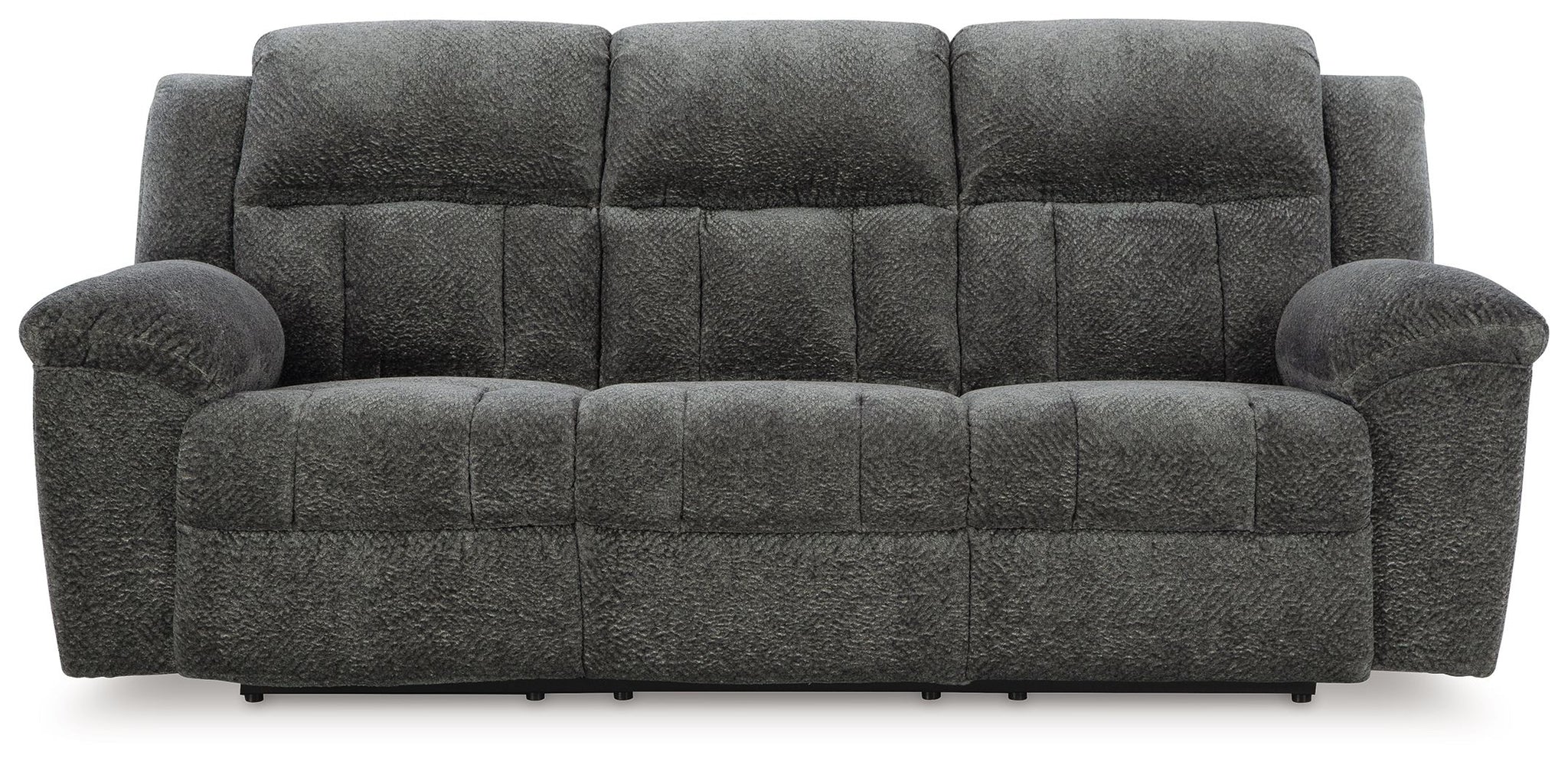With its large-scale design, this extra-spacious reclining sofa is a masterclass in accessible style. Plush, ultra-soft upholstery keeps everyone cozy as you lounge with family or guests. In a neutral hue, it seamlessly suits different aesthetics as your taste changes. Time to relax? The sofa's pull tab reclining allows you to mellow out with ease.
