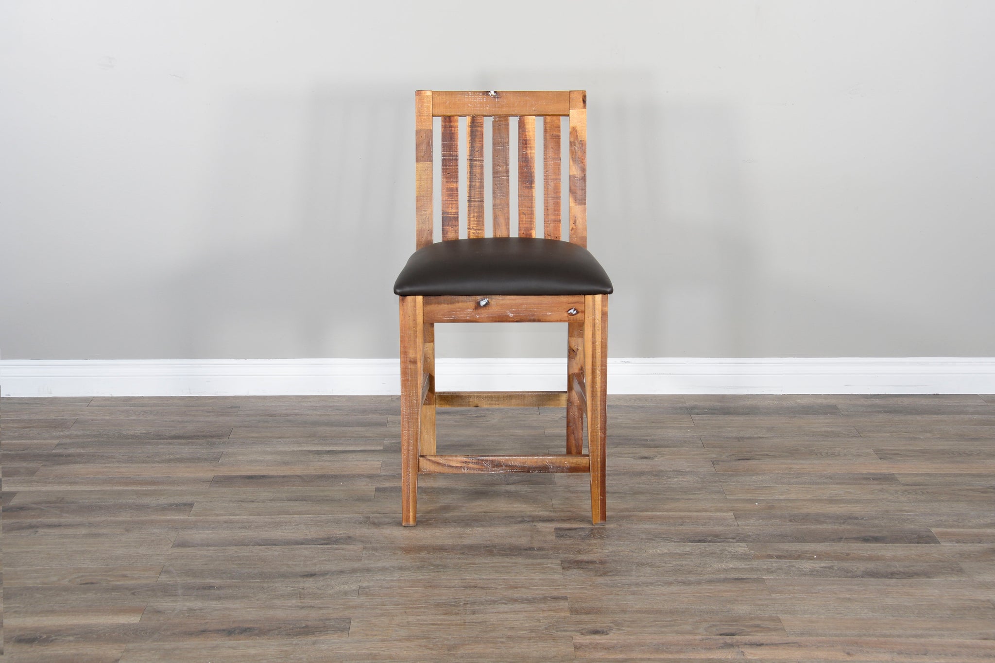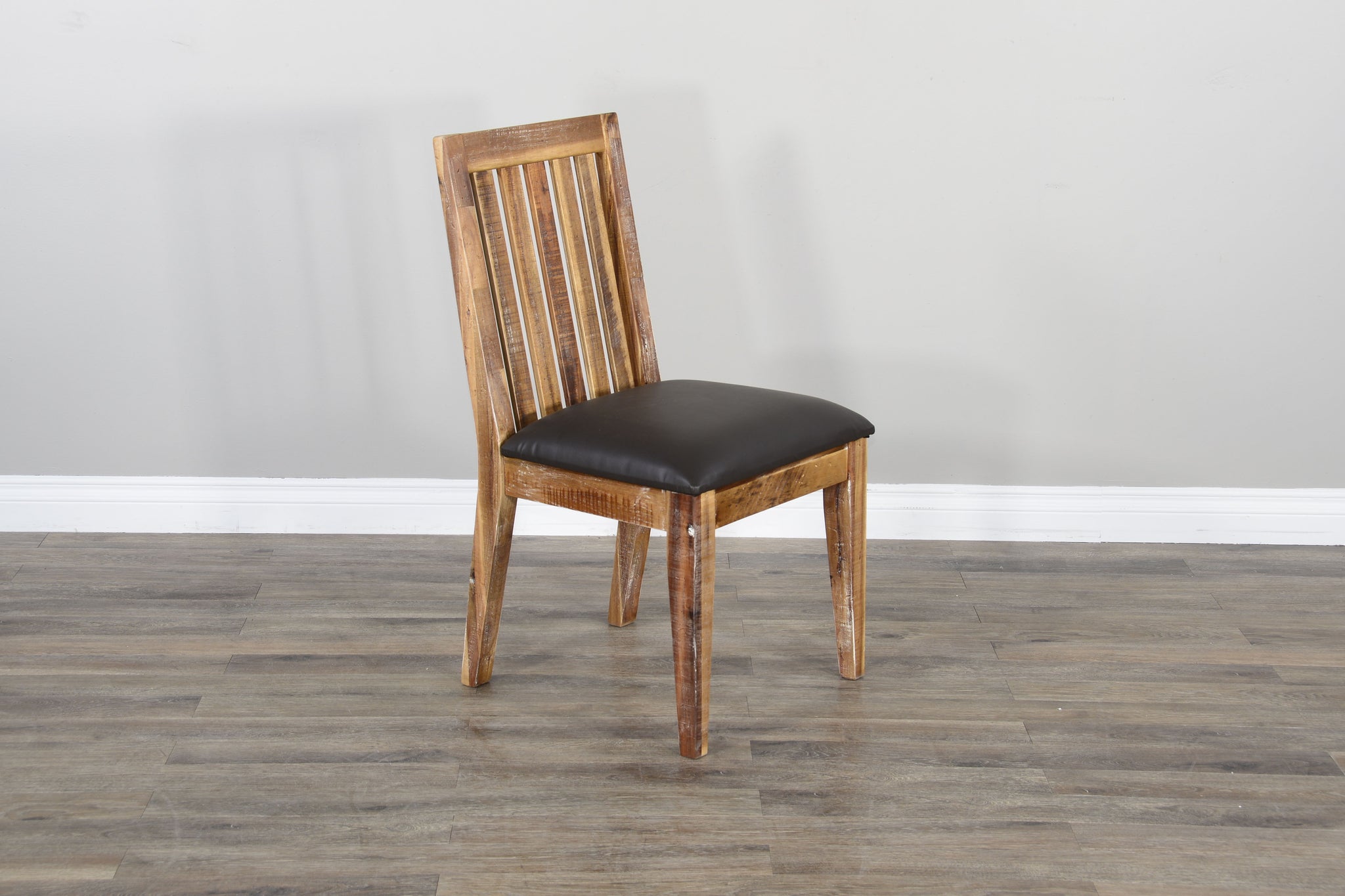 This Havana slat-back chair with cushion Seat. Is sleek and built to last with a beautiful Rustic Acaciat finish and rough sawn acacia solids and veneers.