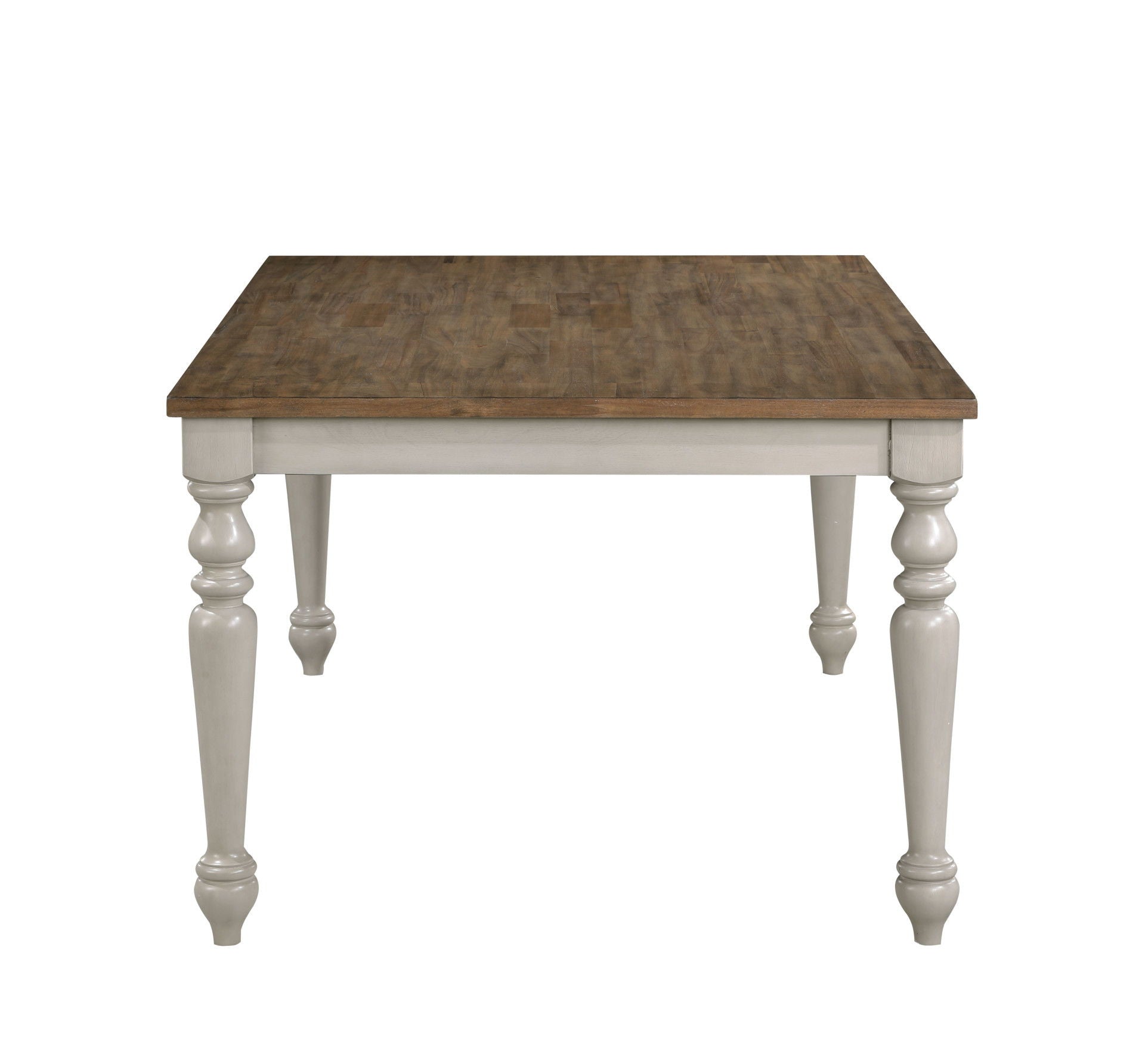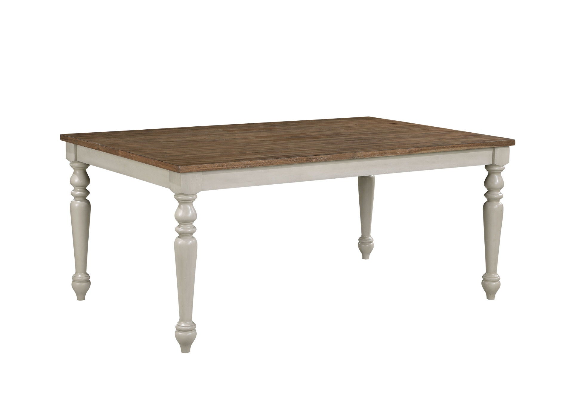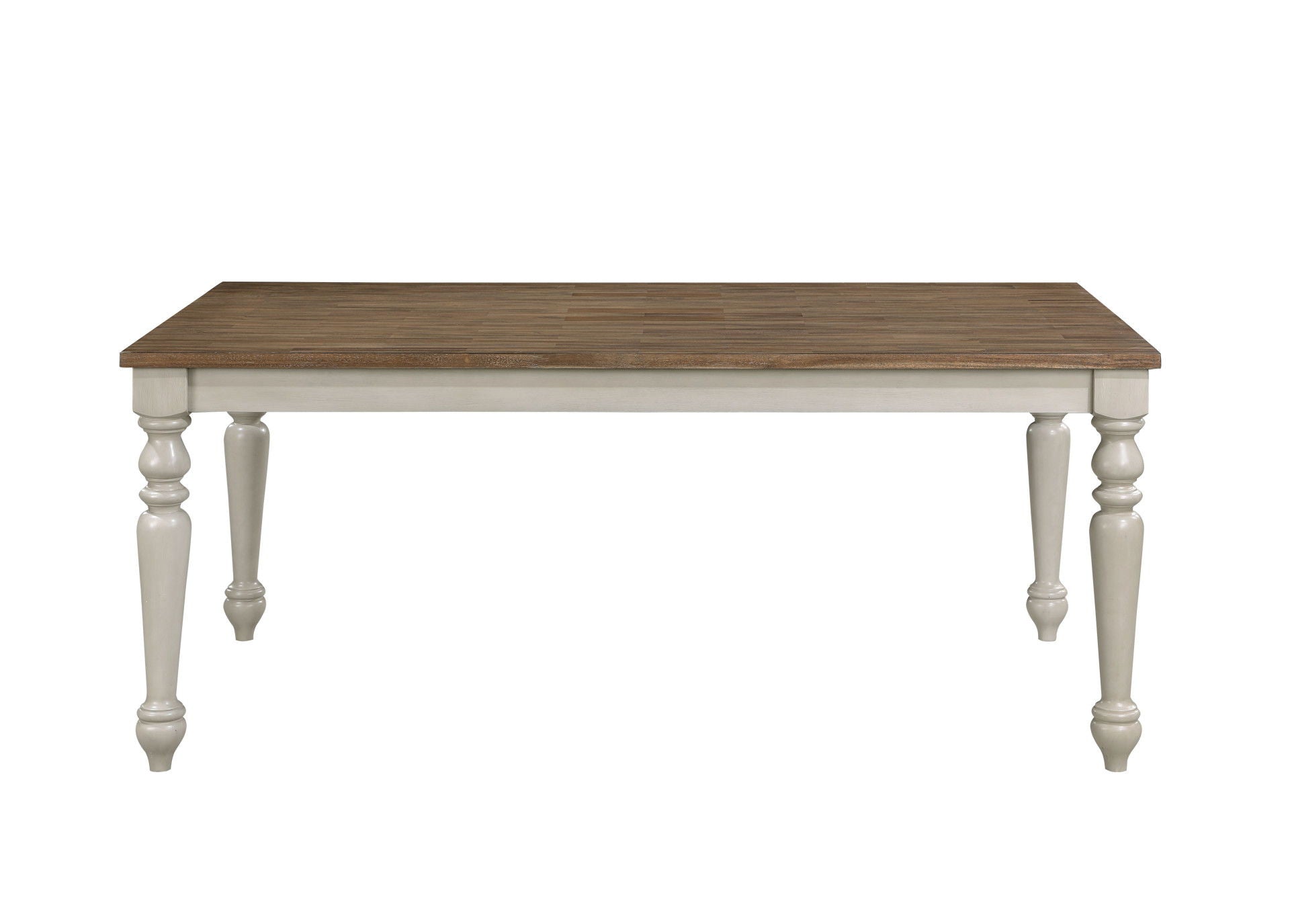 - Timeless Farmhouse Elegance: The soft, distressed two-tone finish exudes a vintage farmhouse appeal, where the rich, natural wood tabletop pairs harmoniously with the cream-colored, weathered base and legs. This expertly curated blend of textures and tones creates a welcoming ambiance, perfect for elevating any traditional or cottage-inspired dining space into a cozy, inviting retreat.